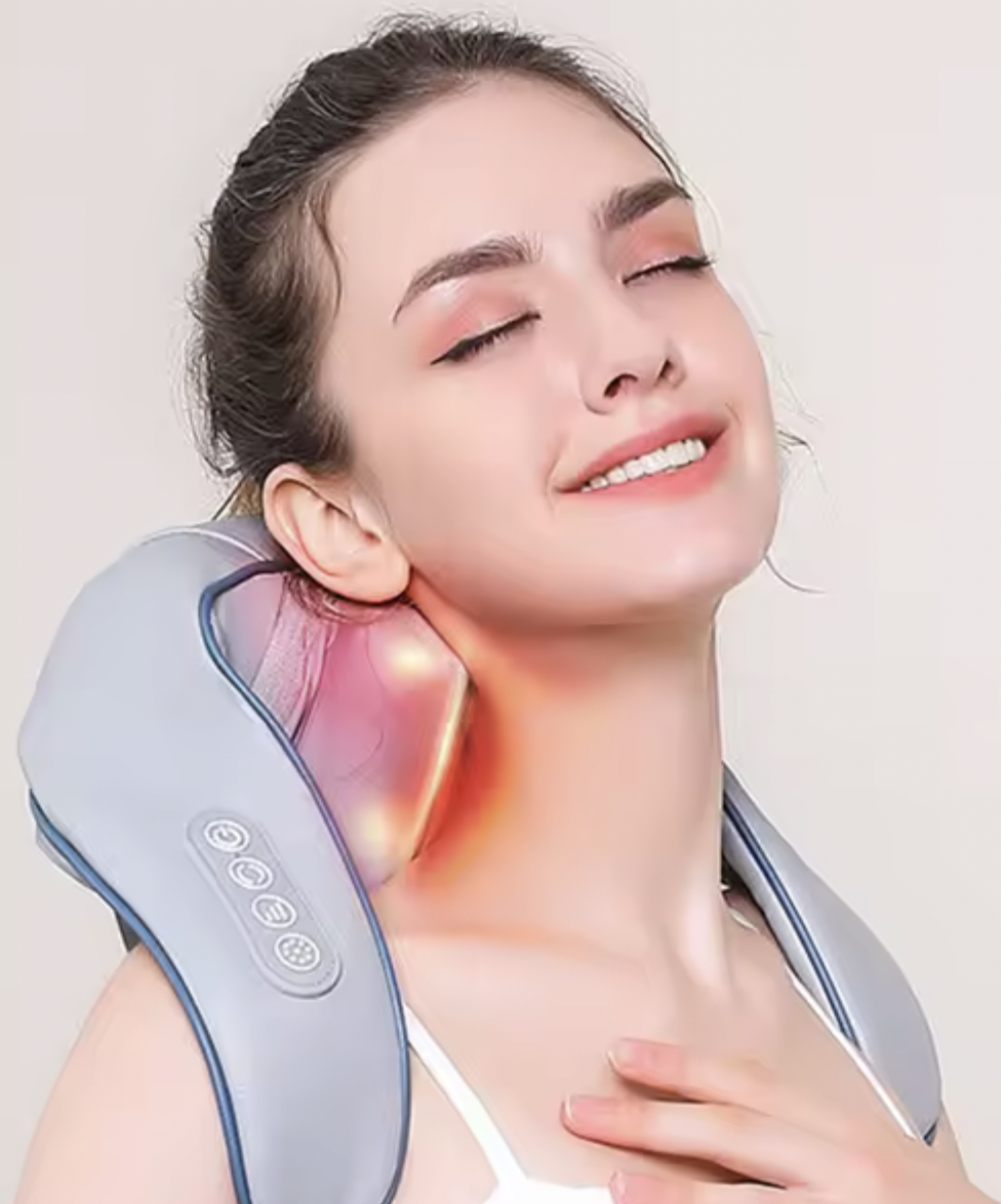 O formato ajusta-se perfeitamente ao contorno do pescoço, garantindo que cada ponto de tensão seja alcançado de forma segura e confortável, mesmo durante longos períodos de uso.